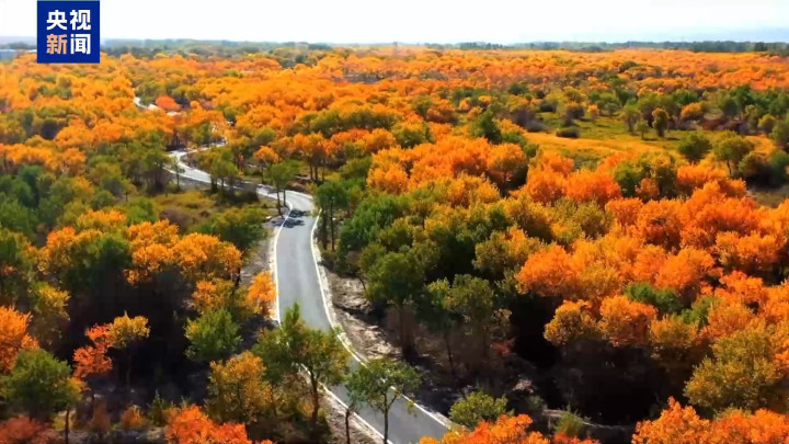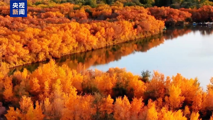 新疆:秋日湖林相映成画大漠鎏金映碧天